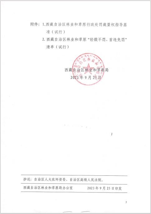 西藏自治区林业和草原局关于印发《西藏自治区林业和草原行政处罚裁决权指导基准(试行)》的通知