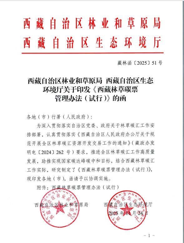 西藏林草碳票管理办法(试行)